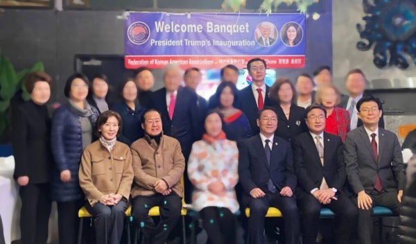 ▲지난 1월 미국 트럼프 대통령 취임식에 참석한다며 미국 출장에 오른 홍준표 시장이 미연방총한인회 초청행사에서 기념사진을 찍고 있다. (사진=김대식 국회의원 페이스북) |