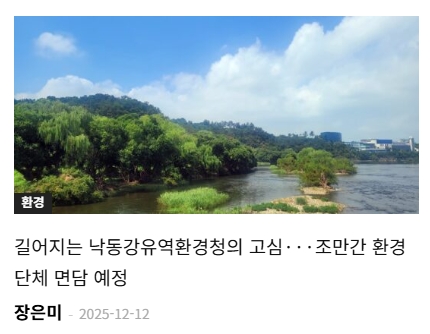 박호석 대구환경운동연합 전 대표는 법정보호종 보호와 생태가치 파괴 등을 지적하면서, 수성구의 여론조사 결과에 문제가 있다고 지적했어요. 박 전 대표는 "사업 강행을 위한 명분을 쌓기 위해 저급한 정치적 행위 차원에서 여론수렴이 이뤄진 것 같다. 공정하고 합리적 절차로 이루어졌는지도 의문”이라고 따졌는데요. 대구환경운동연합 등은 오는 19일 오전 낙동강유역환경청을 찾아 청장 면담을 진행할 예정입니다. (※ 참고로 관련 기사가 나갈 11일엔 면담 예정일이 16일이었다가, 이후에 일정이 조정됐습니다.) 🗓️