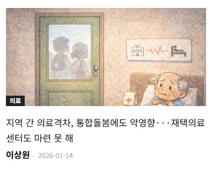 오는 3월부터 지역사회 통합돌봄 사업 시행을 앞두고 있지만, 경북 지역은 아직 4개 기초지자체가 사업의 기본 인프라가 되어줄 재택의료센터도 갖추지 못한 실정이라고 합니다. 지역에 재택의료센터를 운영할 자격 요건을 갖춘 의료기관이 마땅히 없는 상황도 지적되는데요. 지역 간 의료격차가 그대로 지역사회 통합돌봄 사업 시행에도 빨간불을 켜고 있습니다.🚨