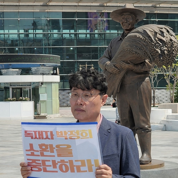 - 지금은 법원에서 박정희 동상에 대한 대구시와 국가철도공단 간 구조물 인도 청구 소송이 진행 중이라서 재판 진행 상황을 지켜보고 있다. 특히 이번 지방선거 국면에서 독재자를 다시 소환하는 것에 대해서, 역사 정의를 바로 세우는 차원에서 계속 반대 입장을 전달할 계획이다. 대구시장 후보들에게 박정희 동상과 관련된 공개 질의서를 보내는 것도 지금 고민하고 있다.